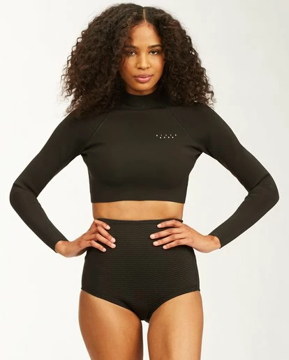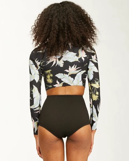 Add some pop to your surf gear with the 2mm Long Sleeve Sea Crop Wetsuit Top, a summer necessity that features an allover floral print and a flattering silhouette. Made with partially recycled materials, this wetsuit jacket is eco-conscious, but still super functional, offering good movement and a stretchy fit.