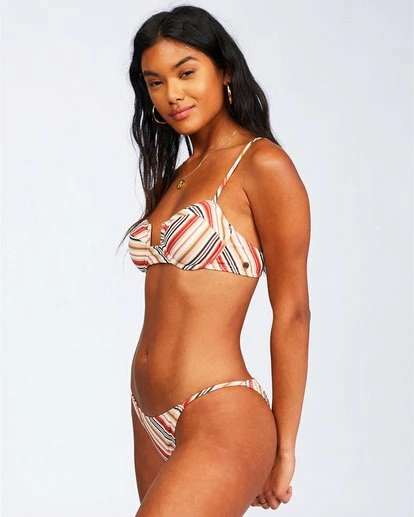 Taking classic tan lines in a new direction, the Above It All stands out with diagonal stripes in sunburnt tones. A striped bikini top made from rib knit swim fabric, the Underwire Bra adds on a modern shape and added support with a U wire at the center front, easily transitioning to a bralette with adjustable straps and a hook closure at the back. Multidirectional striped piecing adds an extra layer of dimension.