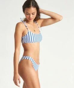 BILLABONG Cassy Stripe Hi Retro Bikini Bottoms MOROCCAN BLUE