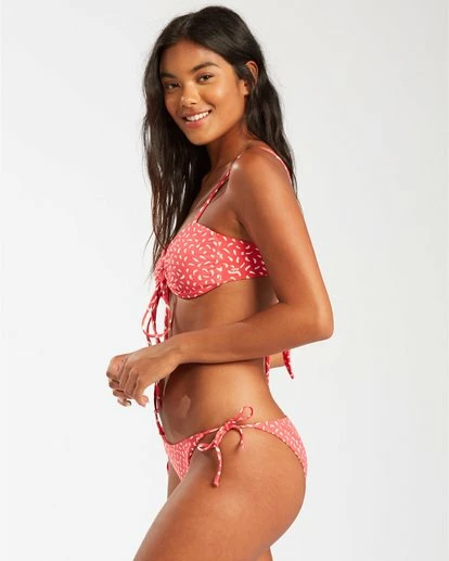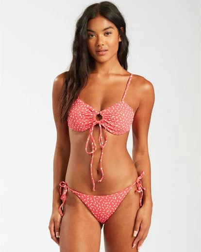 A bold dose of sun-burnt blooms, the Drift Along floats a free-spirited print over a bandeau bikini top. Playing up feminine lines, the floral bikini top features a keyhole and tie detail at the center front and thick hanky tie at the center back.