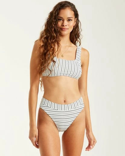 A double-up of nautical lines, the Easy On Me elevates a classic striped bikini with a textured mini rib. A chic stripe with a premium feel is met with a high waisted bikini bottom featuring a retro-inspired high cut leg for an ultra flattering silhouette that falls just below the belly button. A functional fit, the bikini bottom offers a medium coverage seat and waistband detail.