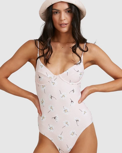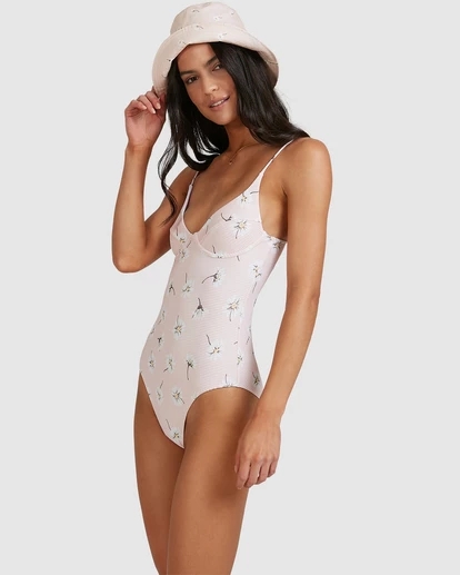 Daisies and daydreams go hand in hand in the Feelin Peachy Ava One-Piece Swimsuit. This women’s swimsuit delivers essential comfort and support while offering a skimpy and flattering view from behind. Packed with summertime sweetness, this pretty pink suit features internal interwire at the bust with adjustable straps and front ling. As if it could get any better, this beauty is eco-consciously made with soft and stretchy recycled swim fabrics.