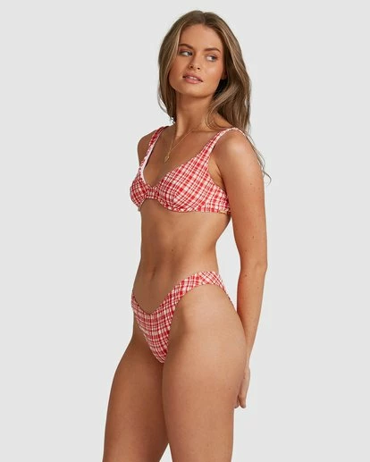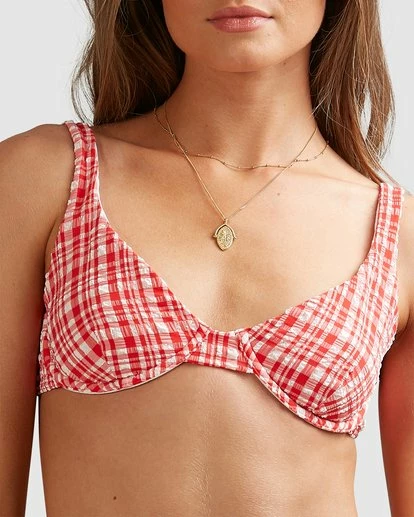 Blur the lines between a bra and bikini top with the Get It Gingham Bra Bikini Top from the Billabong x Steph Claire Smith Collection. This fully lined style features adjustable shoulder straps, a hook back closure, and underwire shaping for extra support and a flattering fit. Super cute paired with denim shorts, white sneakers and wide brim hat!