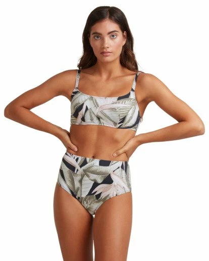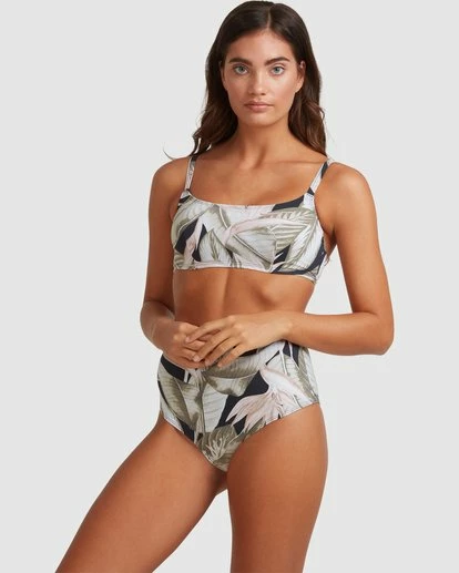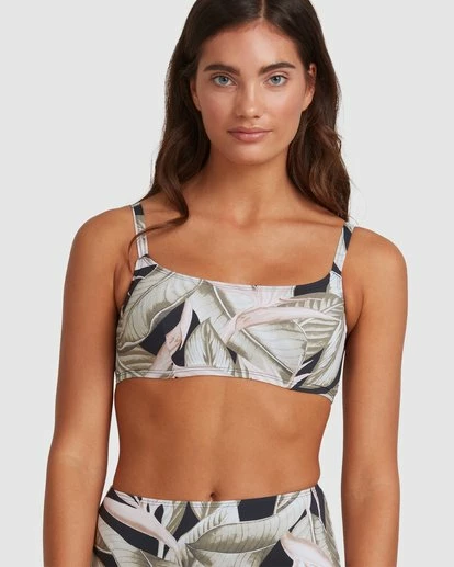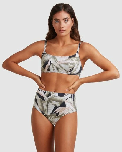 Escape the routine and find your paradise with the Hideaway Mia DD Bralette Bikini Top. Always happiest in the tropics, this women’s swim top offers a classic bralette shape that provides full coverage and support for up to a DD cup. Lined with an internal underwire for a solid fit and feel, this saltwater essential features an all-over print, adjustable straps, and S-hook closure at the back.