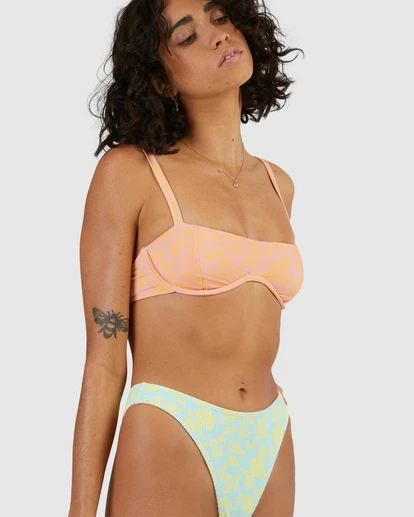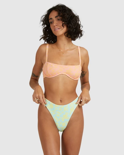 Your retro high-leg dreams have been answered with the Hot Tropics Havana Bikini Bottom. Saturated in a bright floral print, this women’s swim bottom offers a super high leg cut with a medium waist and skimpy bum coverage. It’s fully lined and made with recycled crinkle fabric.