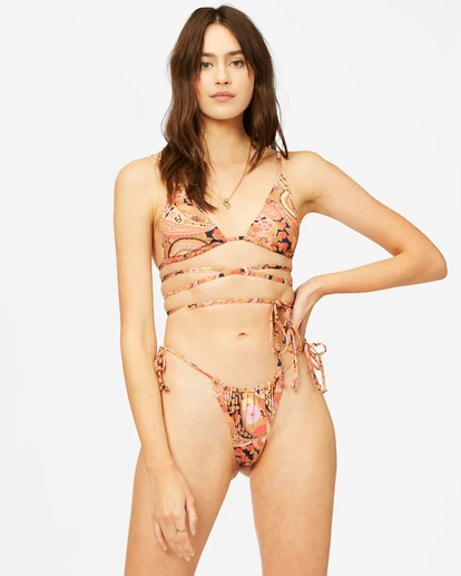 Ready to turn heads? The Lost In Time Tall Triangle Bikini Top is exactly what you want to be wearing when you see your ex at the pool party. This skimpy little ace features a timeless slide triangle design but brings it into the here and now with long ties that wrap around the body. Removable padding lets you decide how much curve you want to flaunt. Plus, this whole look is made with eco-friendly recycled stretch fabric. Flawless.