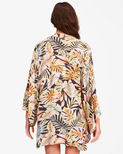 The Parisian Nights Kimono Top is the perfect statement piece to layer over your chic basics. It’s relaxed shape and open front style add easy movement and flow while a stand out print delivers a warm, mellow vibe of the tropics. With lightweight crinkle fabric you never have to worry about wrinkles, so this beauty is great piece to pack for your jet-setting adventures both near or far.