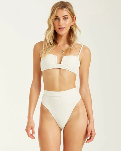 A bikini that ebbs and flows with your beach to street lifestyle, the Peeky Days elevates an essential solid swimsuit with a textured fabric. Blurring the line between bralette and bikini, the Square Wire Bandeau Top features a clean design, accented with a U wire detail at the center front. The wired bikini top can be worn strapless with removable, adjustable straps.