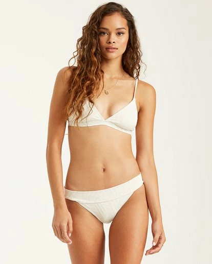 A bikini that ebbs and flows with your beach to street lifestyle, the Peeky Days elevates an essential solid swimsuit with a textured fabric. The Fixed Tri updates the classic triangle top with a fixed shape and wider underband, offering a cleaner look under clothes as well as extra surfable support.