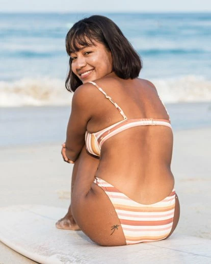 A bikini bottom that compliments your natural glow, the Ray Of Gold Hike Bikini Bottom is a newfound treasure this season. Made with recycled swim fabric, this women’s bottom takes a modern approach to a retro silhouette that sits super high on the hips with barely-there bum coverage. Bronzed and beautiful, the bottoms feature a standout striped print sure to turn heads.