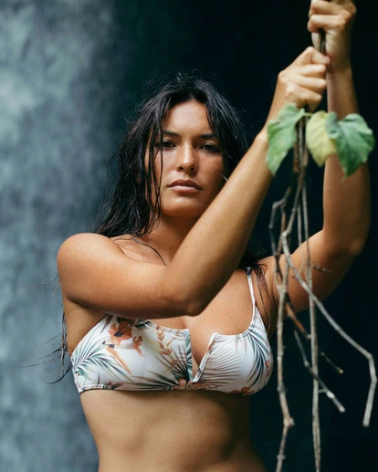 We’ve reached the promised land with the Take Me To Paradise Bralette bikini top. Serving up a medium coverage fit that stays put while you wander and roam, this women’s swim top features a V-wire notch at the center front, adjustable shoulder straps, and removable padding so you can customize your curves. Shine bright in this all-over tropical print made with recycled swim fabric.