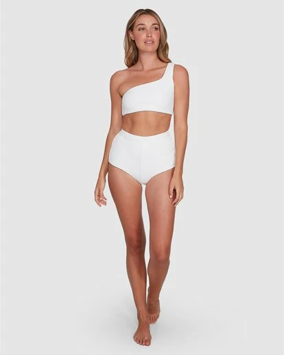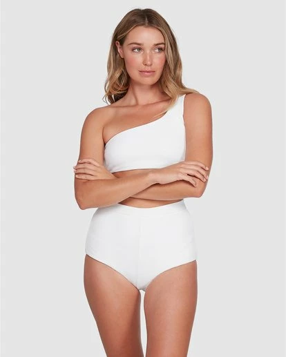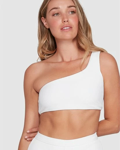 Sleek style takes a play on a fun textured fabrication in the Tanlines Crop Bikini Top. This one shoulder design is fully lined and features clean finished edges throughout.