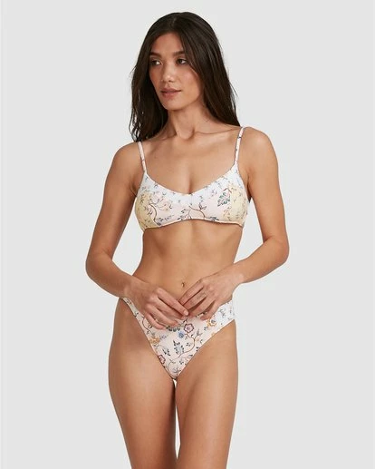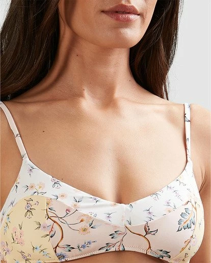 Feminine florals and flattering fits come together hand in hand in the This Gypsy Gigi Bikini Top. This vintage bralette style combines multiple floral prints on a peach stretch fabrication. Design features include front panelling with a clean finish at the front neck and armholes for additional comfort. Finished with adjustable shoulder straps and a hook back closure to make the perfect fit.