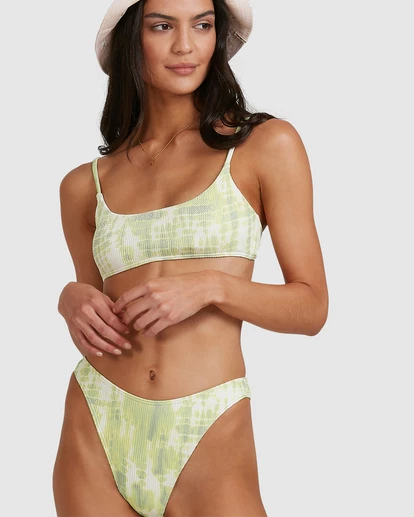 Sunbaked and surf-trippin, the To Dye For Bralette bikini top combines athletic lines with a psychedelic print. This women’s swim top offers a supportive, scoop neckline with removable padding, a clean finish, adjustable shoulder straps and a hook back closure. It’s rippled, it’s rad, and it’s made from recycled swim fabrics.