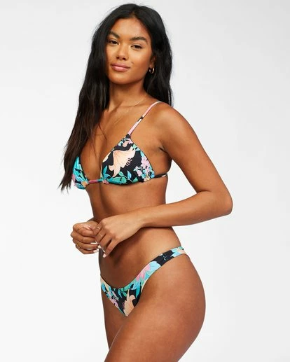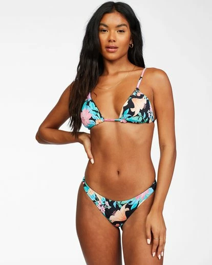 Twice as nice, the Tropic Time reversible slide triangle bikini top gives you two sensational styles in one. With a quick flip, you’ll have a new bikini look to match your mood. Classically designed, the triangle cups can be slid to create the exact coverage you desire. Recycled swim fabric provides perfect stretch and support. Adjustable ring and slider straps give you a no-slip fit.