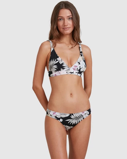 Rocking some fierce tropical foliage, the Tropicool Elongated Triangle bikini top takes you from the rainforest to the sandy shores. A modern take on a timeless silhouette, the women’s bikini top is cut with a deep V-neckline featuring front lining, removable padding, adjustable straps, and a hook back closure. Standing up for the environment, this tropical leaf print bikini top is made from soft and stretchy recycled swim fabric.