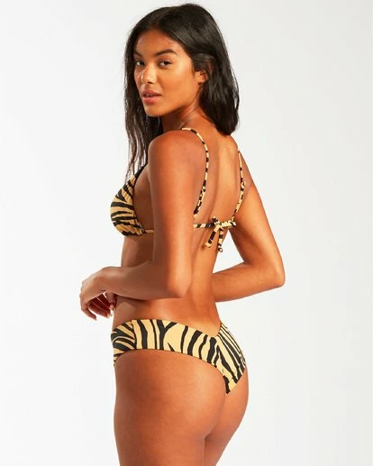 Hey all you coastal cats and kittens. Designed to roam, the tiger print bottom features a V cut with a high leg and center back seam. The Fiji bottom serves up a super slim seat and a style that’s made to wear high on the hip.